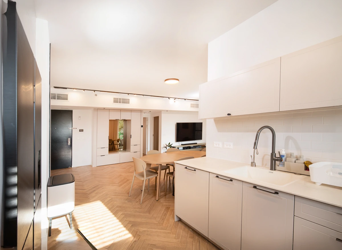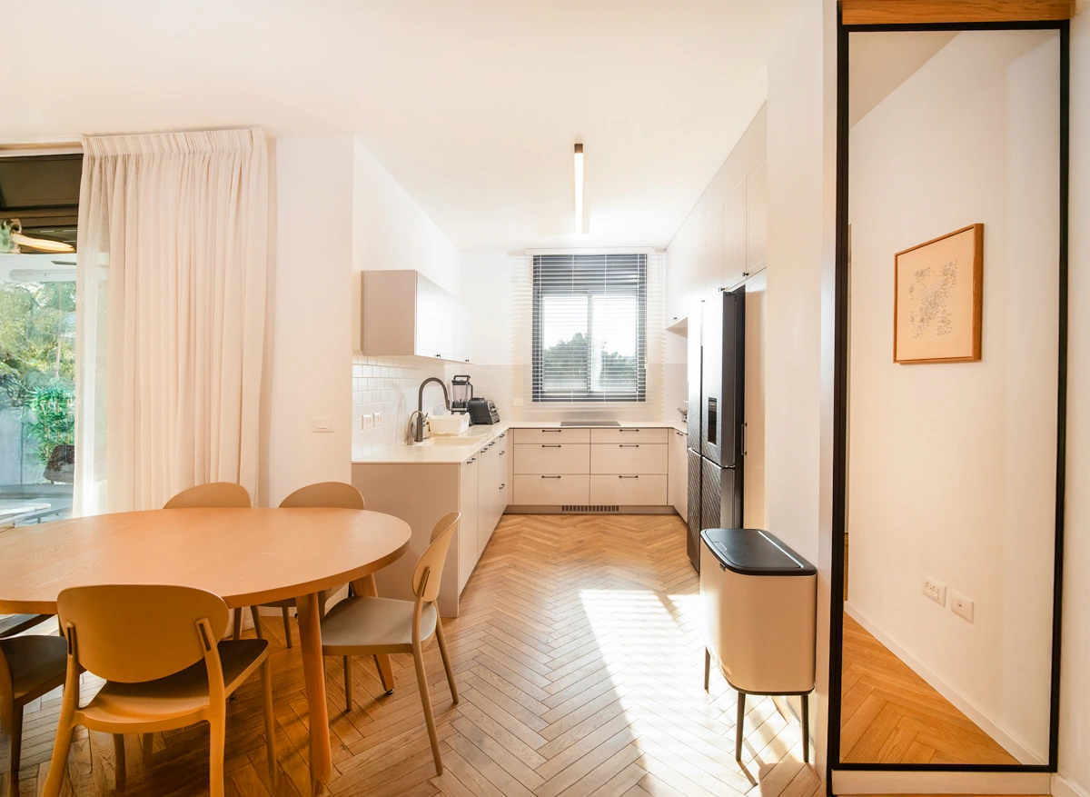 מטבח מעוצב עם אור טבעי וחלל פתוח